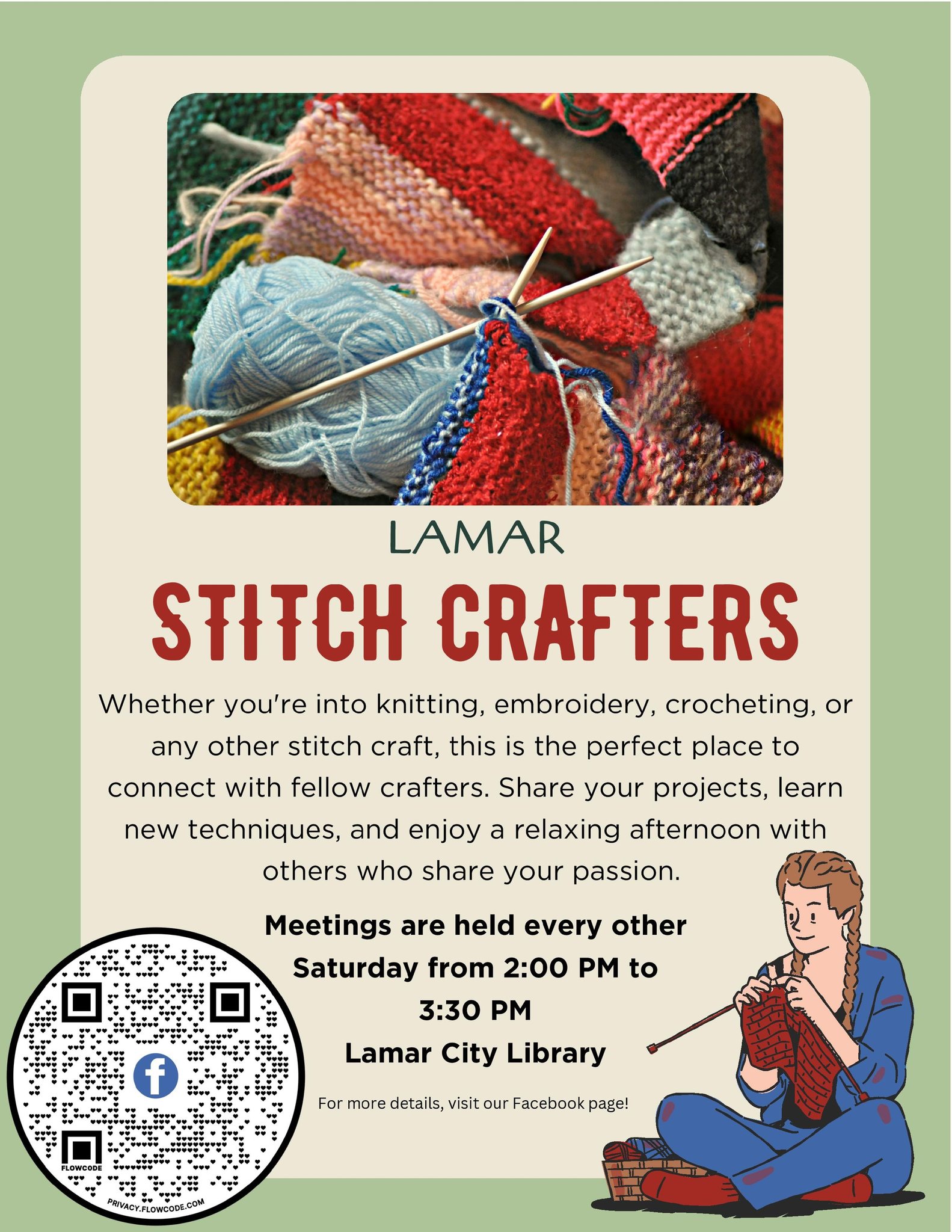 March 14, 2 p.m., Stitch Crafters. Library.
