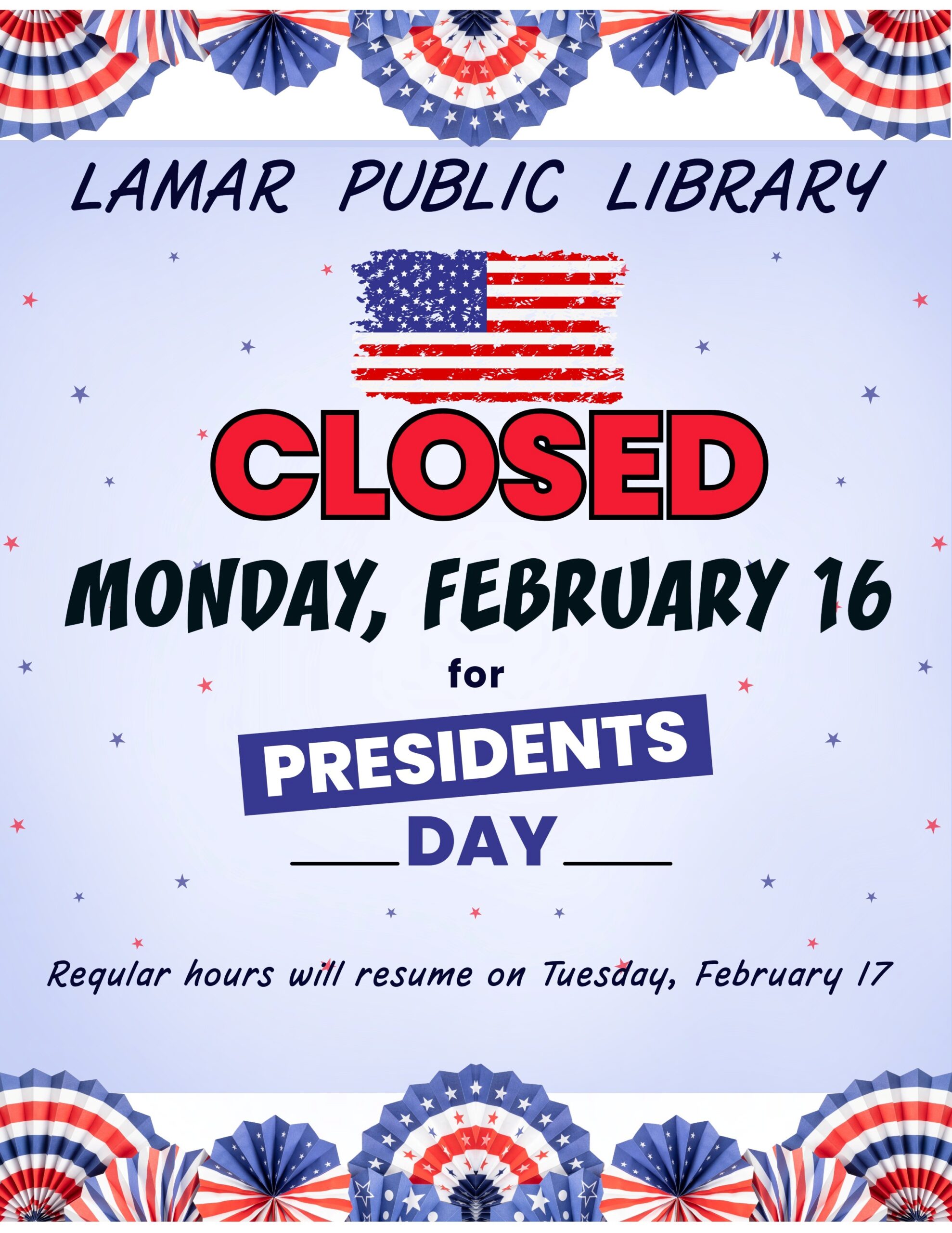 Feb. 16, LIBRARY CLOSED FOR HOLIDAY. Library.