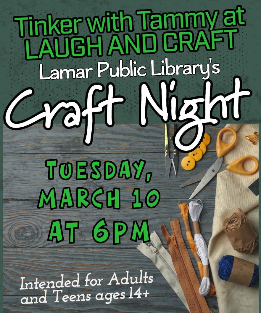 March 10, 6 p.m., Tinker with Tammy. Library.