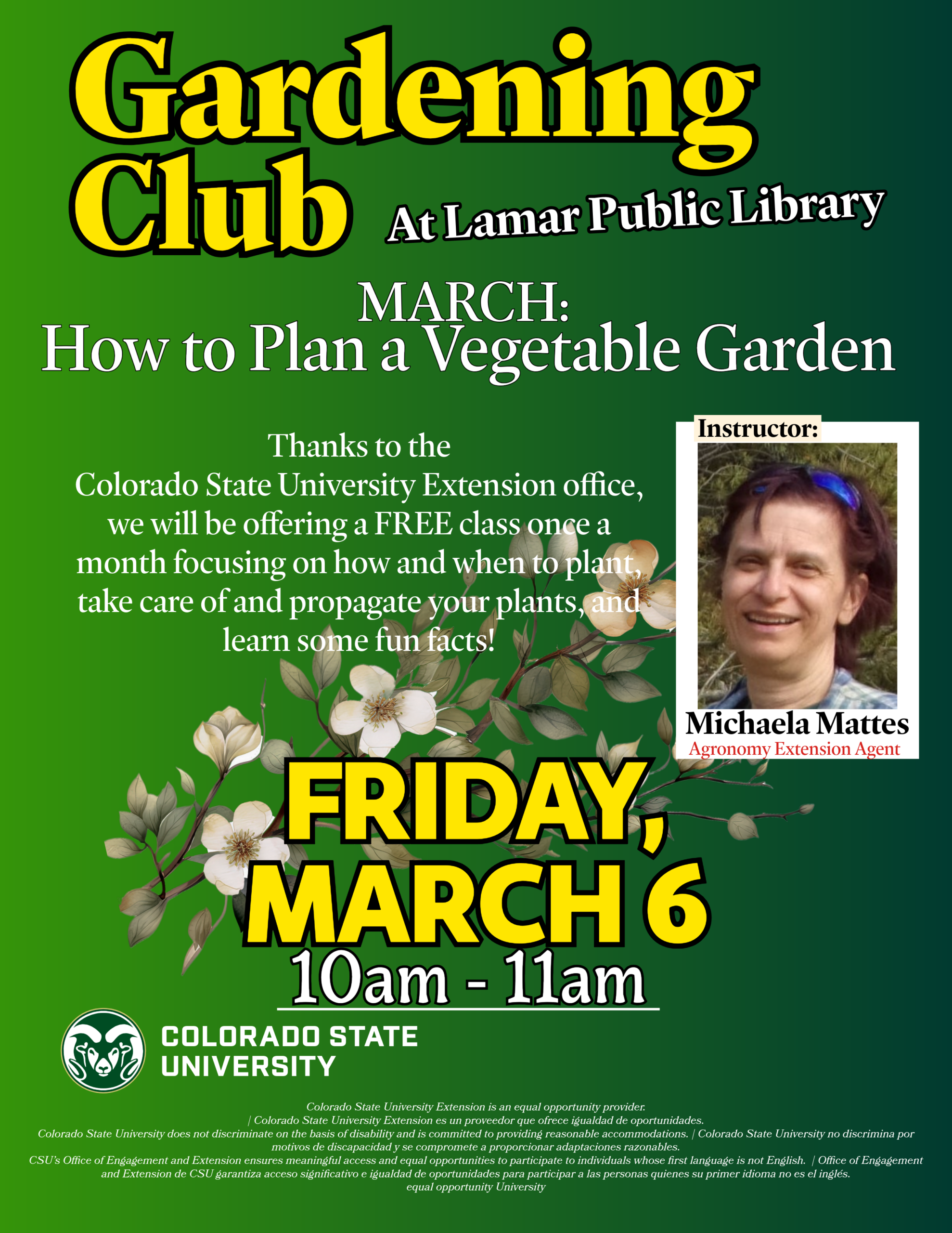 March 6, 10 a.m., Gardening Club. Library.