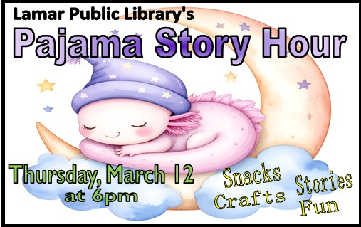 March 12, 6 p.m., Pajama Story Time. Library.